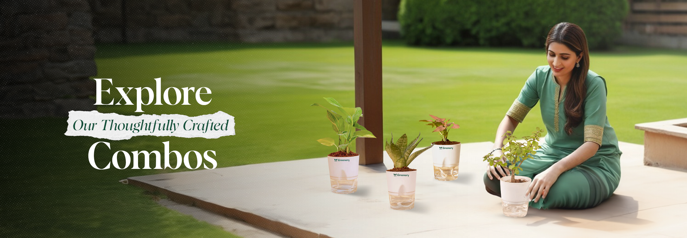 Set Of 2 Live Indoor Plant Combo Of Areca Palm And Money N'Joy With Self Watering Pot