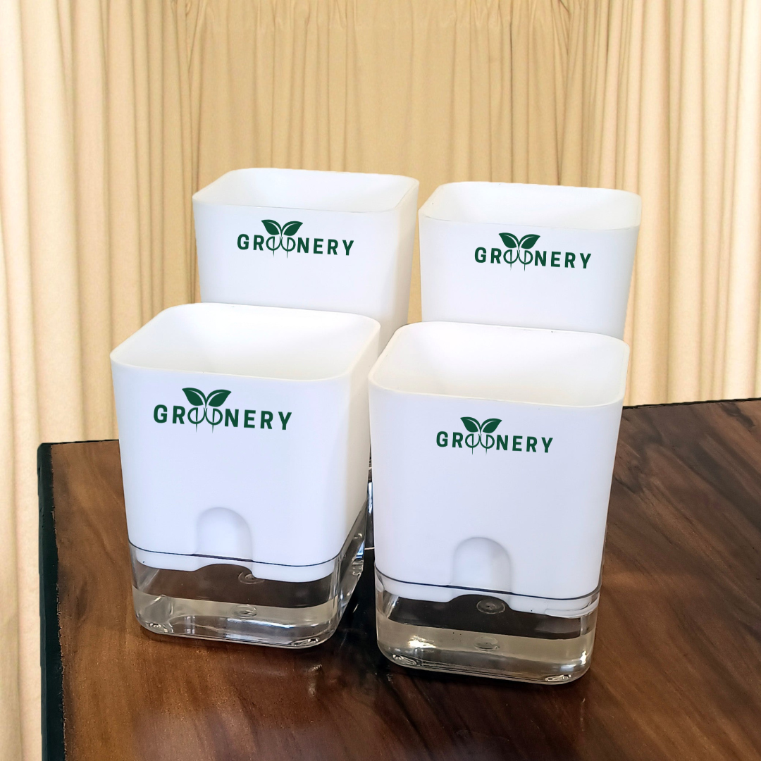 Set of 4 Self Watering Square Pots (Without Plant) | Home Decor, Living Room, Table Top